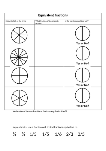Equivalent fractions math worksheets. 1st Grade Math Worksheets 1st grade math is the start of learning math operations, and 1st grade addition worksheets are a great place to start the habit of regular math practice. The math worksheets in this section are selected especially for first graders and working with them will build a solid foundation for math topics as students move on to higher grades. Grade 3 Math Worksheet: Equivalent fractions | K5 Learning In these equivalent fractions worksheets, students color in pie charts to represent fractions. This visually reinforce the meaning of "equivalent" for fractions. Worksheet #1 Worksheet #2 Worksheet #3 Worksheet #4 Worksheet #5 Worksheet #6 Similar: Identify equivalent fractions with pie charts Identify fractions - color in the fraction Equivalent Fraction Worksheets - Math Worksheets 4 Kids Math > Pre-Algebra > Fractions > Equivalent; Equivalent Fractions Worksheets. Every nook and cranny of our pdf equivalent fractions worksheets is stuffed with practice that helps children ease into fractions equivalence! As concepts like operations with fractions and comparing or ordering them are all built around equivalence of fractions, a ... Equivalent Fractions on a Number Line Worksheets With these printable tools, you can tickle children's flair for identifying equivalent fractions on a number line, completing equivalent-fraction sentences, plotting equivalent fractions, and more. Our free equivalent fractions on number lines worksheets with answer key are the resource that grade 3 and grade 4 students have been longing for!